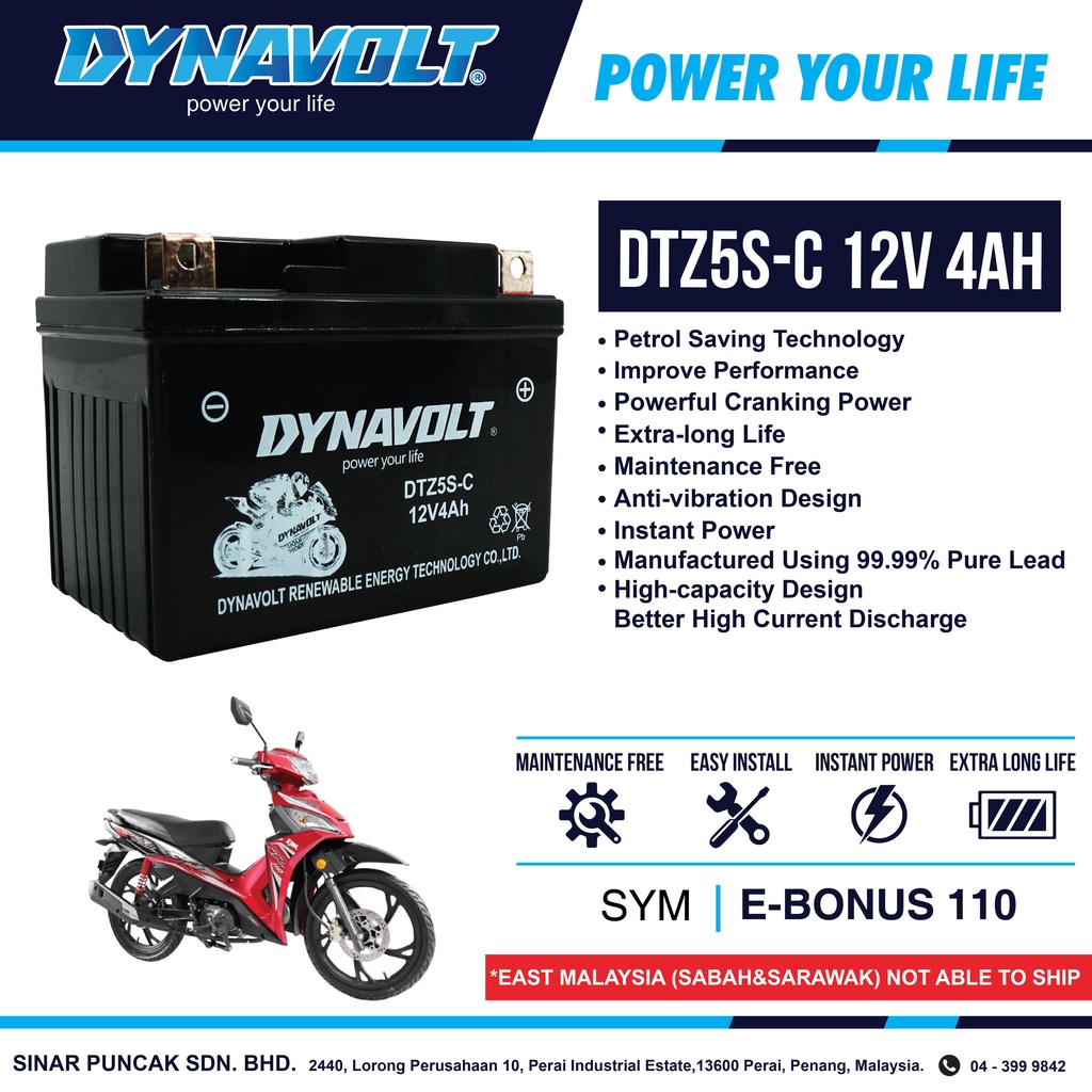 Sym E Bonus 110 Dynavolt Battery Dtz5s C 12v 4ah Shopee Malaysia
